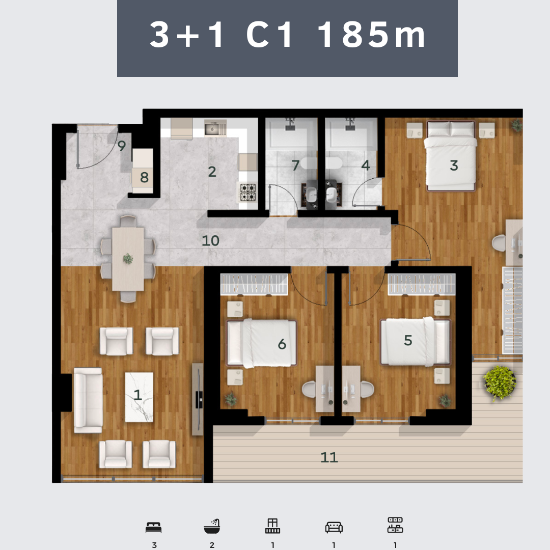 project consists of (11) towers and there are also 36 floors and 4000 units and 4 basements designated for parking and 2 floors for business.